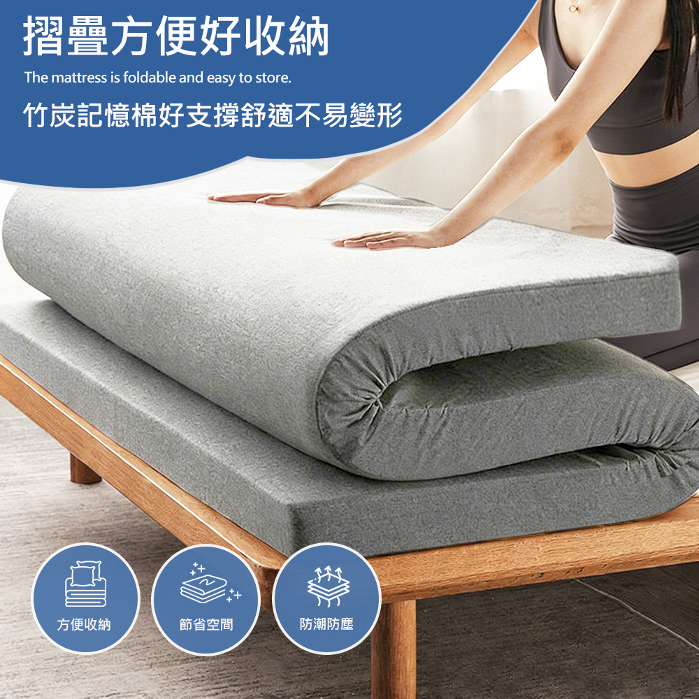 【寢室安居】10cm日式記憶摺疊床墊 雙人5尺 台灣製 3M防潑水 抗菌 + 防蹣(多色任選)