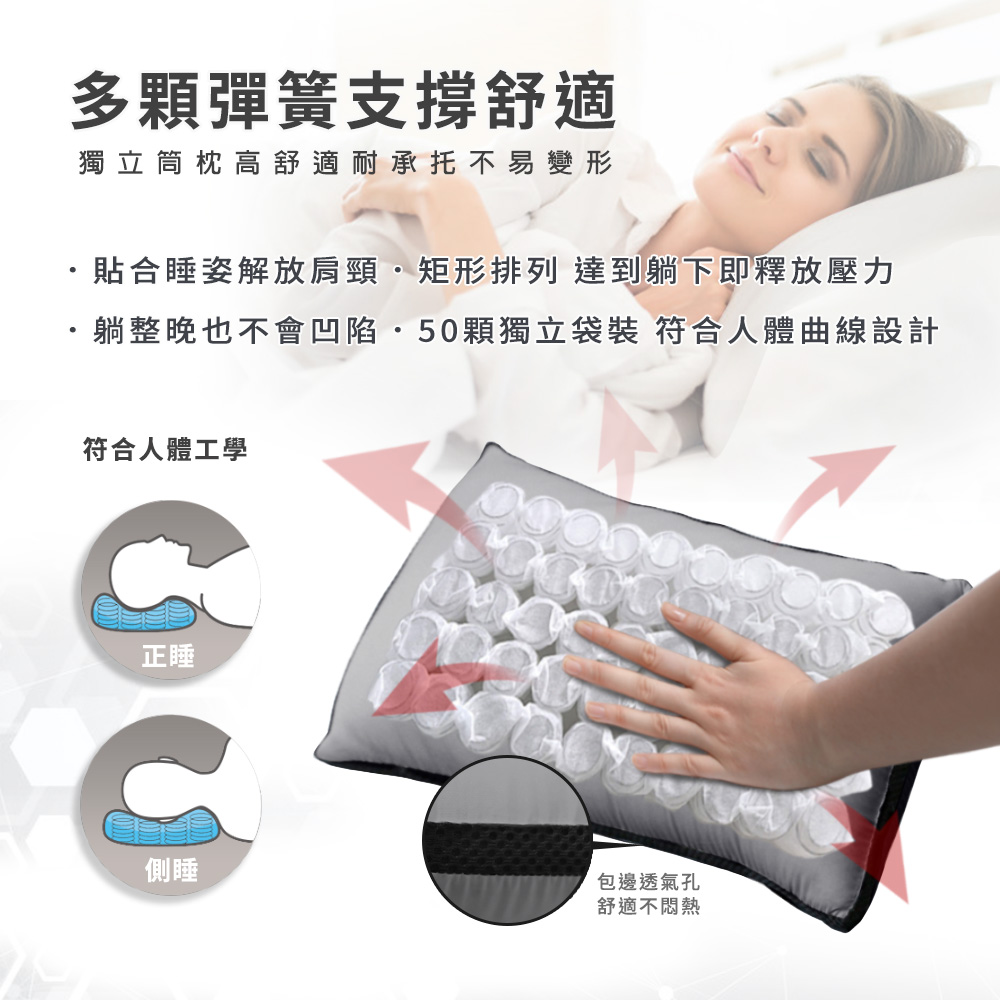 石墨烯羽絲絨獨立筒枕(舒眠/釋放壓力/透氣)