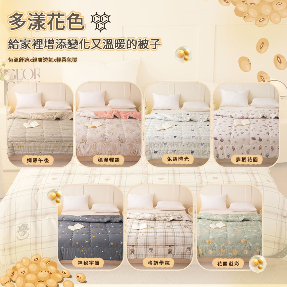 【寢室安居】日系療癒風 石墨烯恆溫大豆纖維水洗被-嫻靜午後