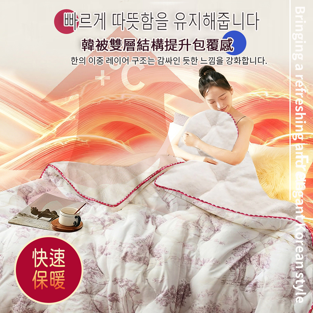 【寢室安居】韓國Hanebul 雙材質單面絨毛水洗被2KG-法式夢境150*205CM-紅色(廣藏市場.韓國棉被.韓國被.冬被)