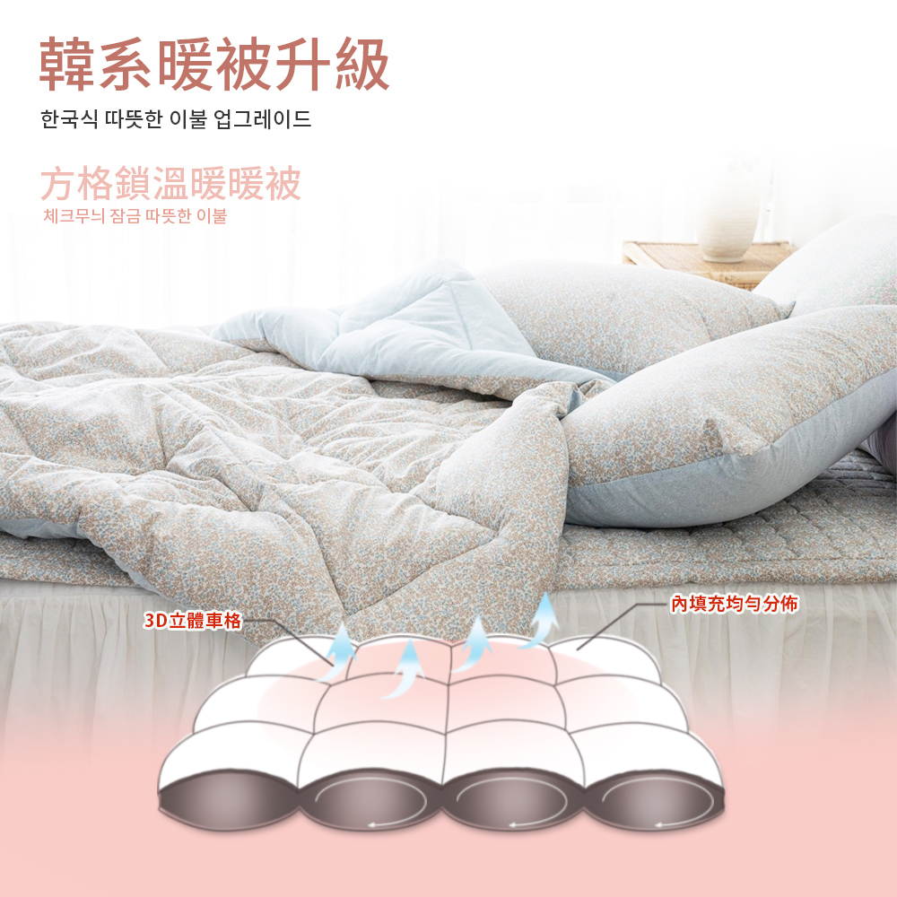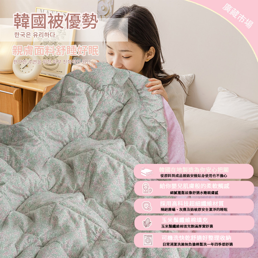 【寢室安居】韓國Songhwa 花語雙面蓬鬆厚款水洗被 冬被150X205CM-粉色(廣藏市場.韓國棉被.韓國被.四季被)