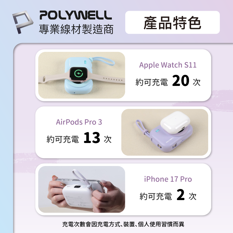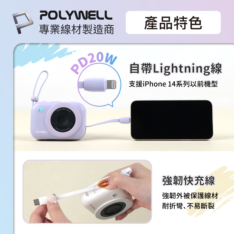 【自帶雙充電線】內建Type-C與Lightning雙線,出門免帶線更方便