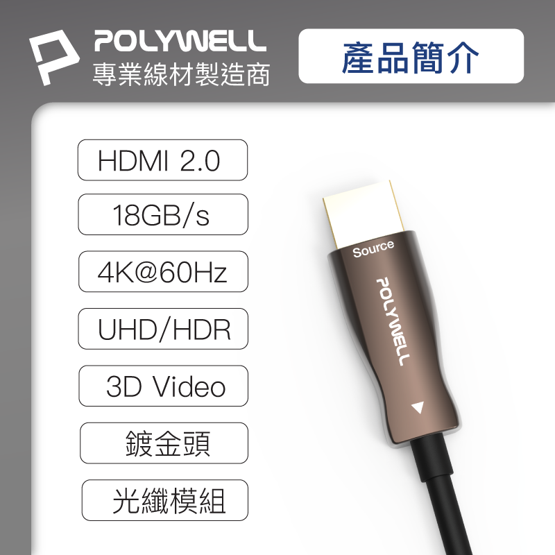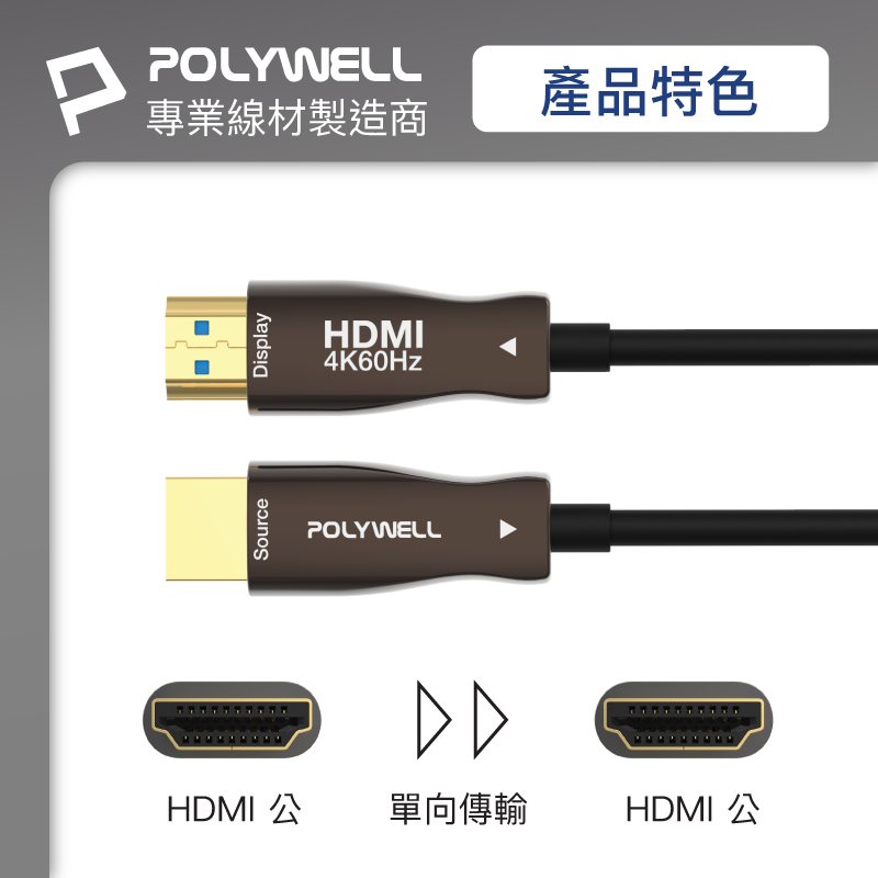 【POLYWELL】HDMI 4K AOC光纖線 4K 60Hz UHD 工程線/2米~50米