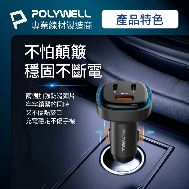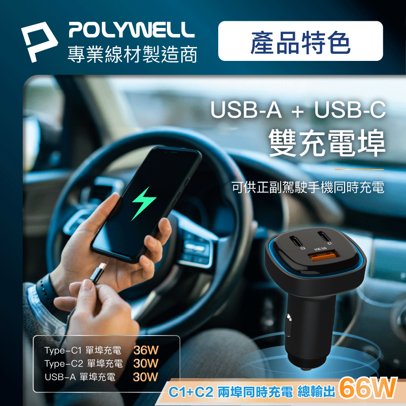 ◎ 產品: 66W車用快速充電器 (Type-Cx2+USB-A)