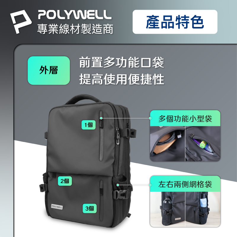 ◎ 產品: POLYWELL 多功能擴充後背包