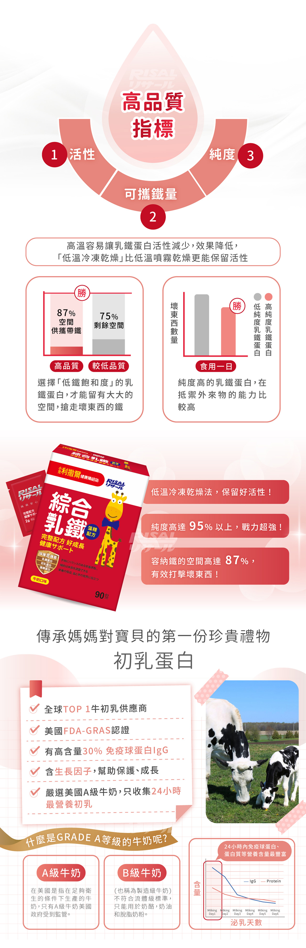 乳鐵蛋白資料1.全球前十大乳品公司Saputo,原料與製造皆在澳洲2.高規格 FSSC 22000 食品安全系統認證3.放牧式飼養,不使用人工激素(rBST)4.脫脂牛乳萃取技術5.低溫冷凍乾燥技術大豆萃取(磷脂醯絲胺酸PS)專利證明:1. 通過FDA-GRAS等級證明書2.美國專利認證3.多項國際認證(GMP、HACCP、ISO9001:2008)4.非基因改造食品5.多項PS攝取之臨床試驗資料其他證明:1.產品責任新臺幣1000萬元