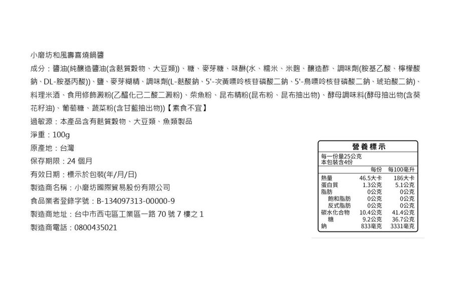 ◎品牌:小磨坊 ◎規格: 100g克 x 1 x 1Bag包