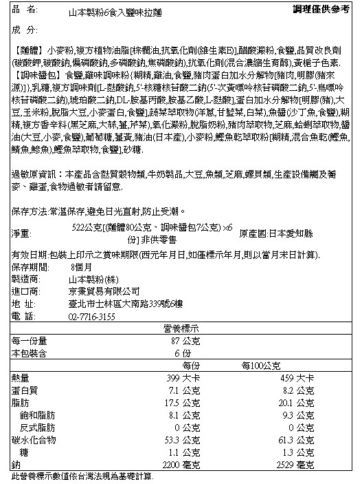 ◎品牌:山本製粉 ◎規格: 522g克 x 1 x 1PC包