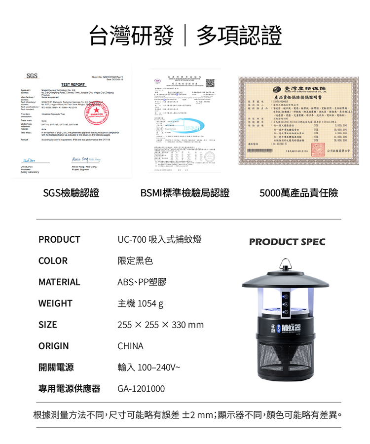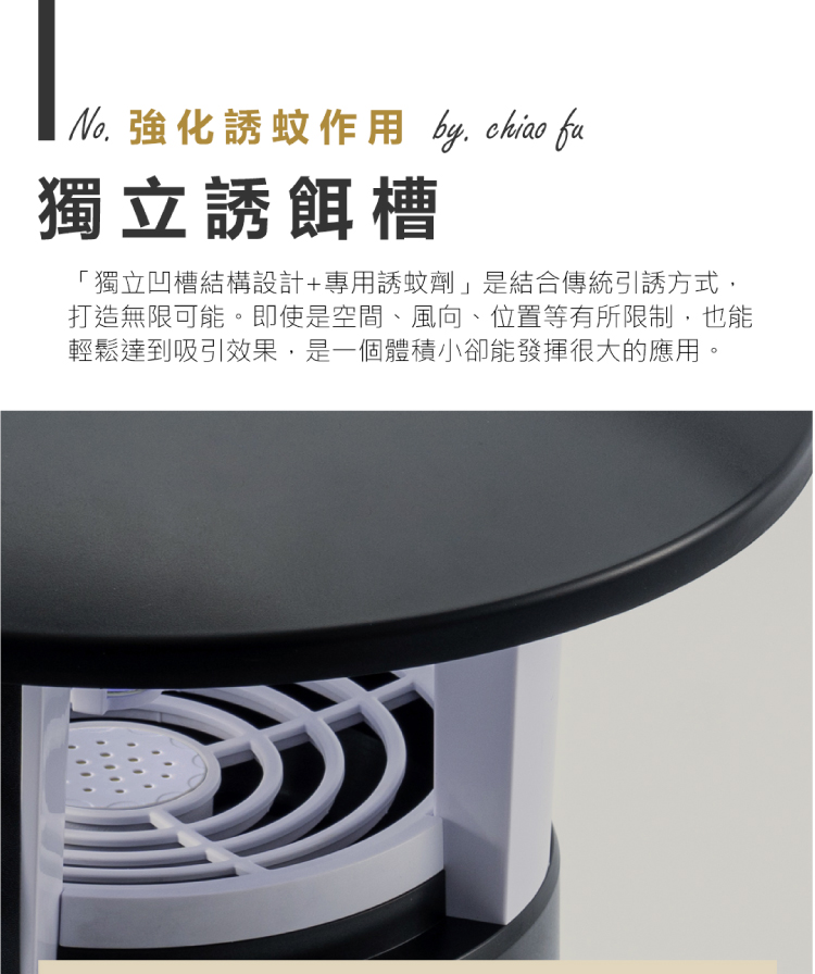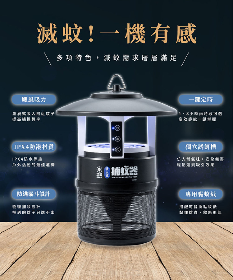 【巧福】吸入式捕蚊器 IPX4防潑水 首創誘餌+黏蚊紙 (無腳架) UC-700