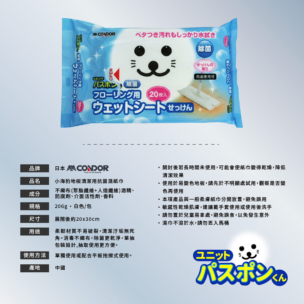 【日本山崎】小海豹 地板用濕紙巾 (20枚入x3.包) DC-013 (巧福公司貨)