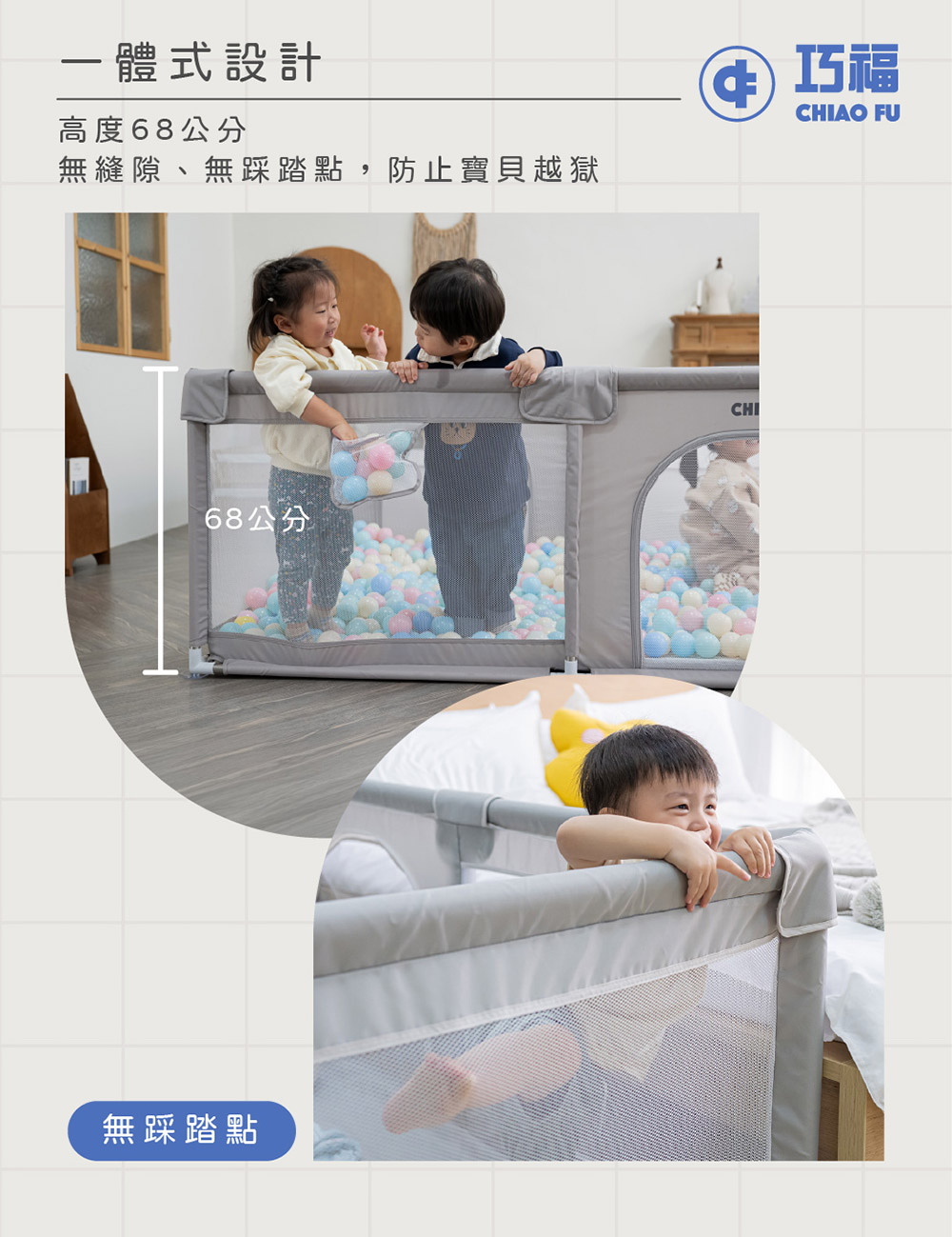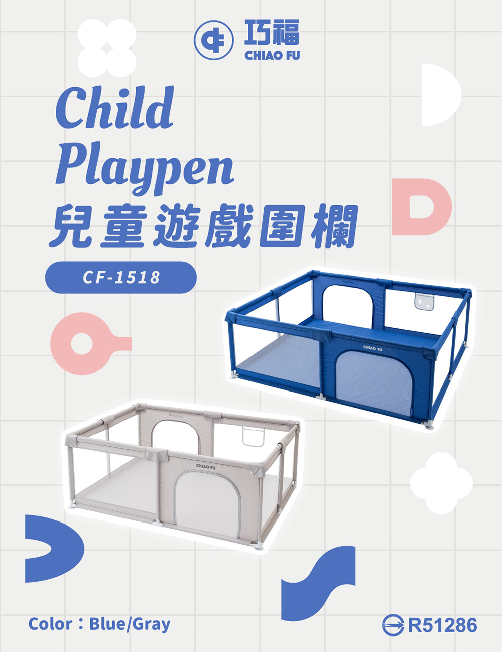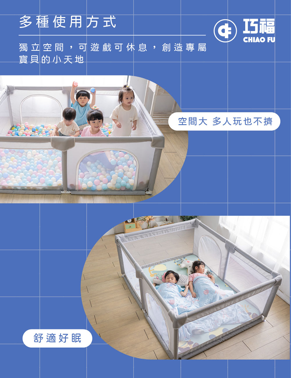 【巧福】兒童遊戲圍欄 CF-1518 藍色/灰色 兩色任選 (台灣認證)