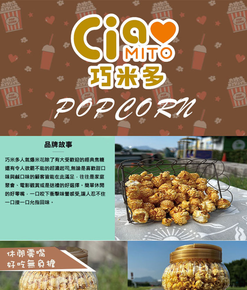 品名:巧米多起司爆米花(奶素) 成分:玉米粒(非基因改造)、砂糖、棕櫚油、中雙糖、食鹽、起司調味粉(起司、牛奶、鹽、磷酸氫二鈉、氯化鈣、二氧化矽、食用黃色四號、食用黃色五號)、L-麩酸鈉(調味劑)、呈味核苷酸二鈉(5'-鳥嘌呤核苷磷酸二鈉、5'-黃嘌呤核苷磷酸二鈉)(調味劑)、義大利香料、香料、磷酸鈣(品質改良劑) 品名:巧米多焦糖爆米花(全素) 成分:玉米粒(非基因改造)、砂糖、棕櫚油