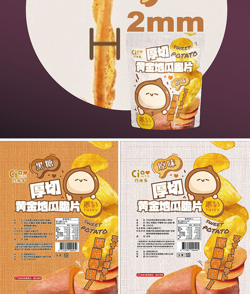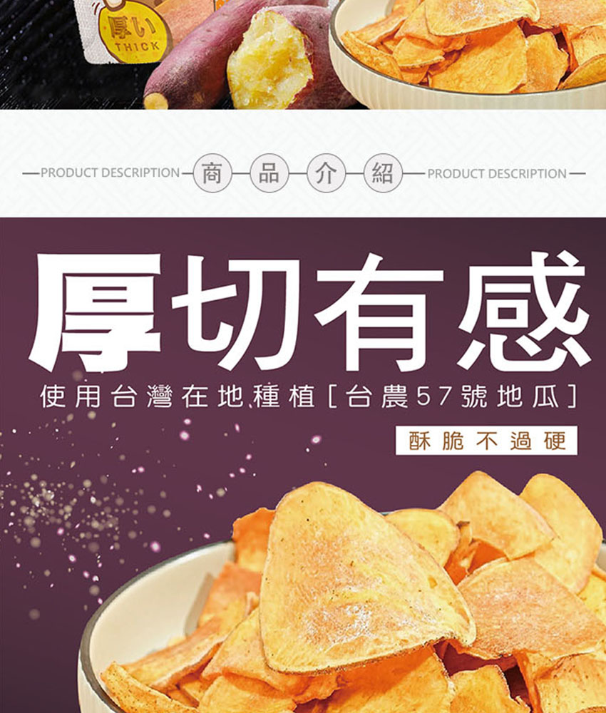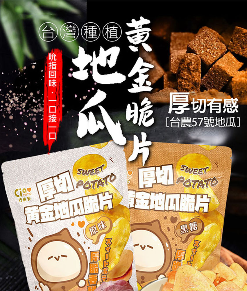 品名:巧米多厚切黃金地瓜脆片(黑糖)