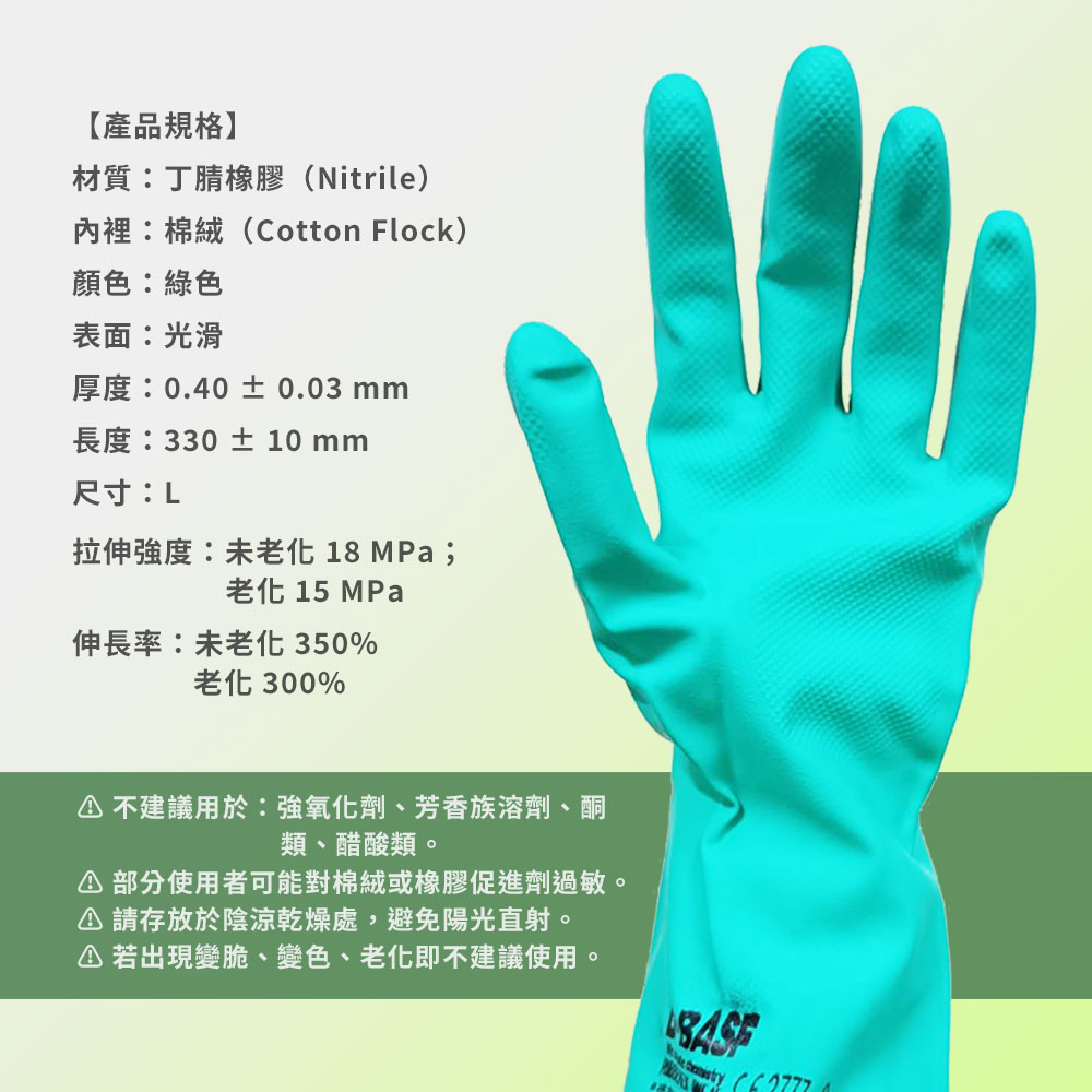 【巴斯夫 BASF】丁腈耐化學手套(內襯棉絨 / 食品接觸認證 / Type A 化學防護)