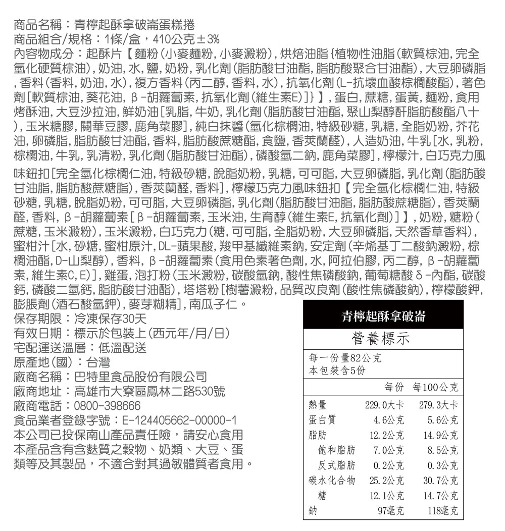 【巴特里】青檸起酥拿破崙蛋糕 4入組 贈蔥餐包1盒