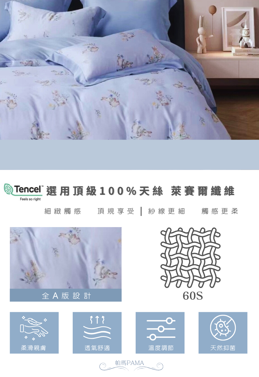 【帕瑪PAMA】100% 60S 天絲床包組/雙人加大6 X6.2/小頑兔-藍