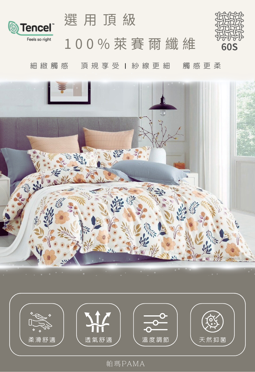 表布:100%萊賽爾纖維【60支紗-高密度萊賽爾纖維】