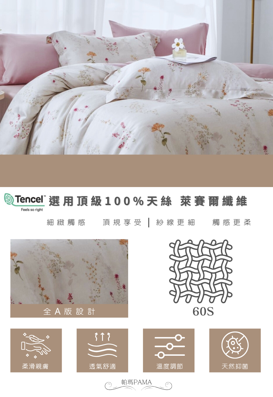 【帕瑪PAMA】60S 100%天絲兩用被床包組/單人/雅卉