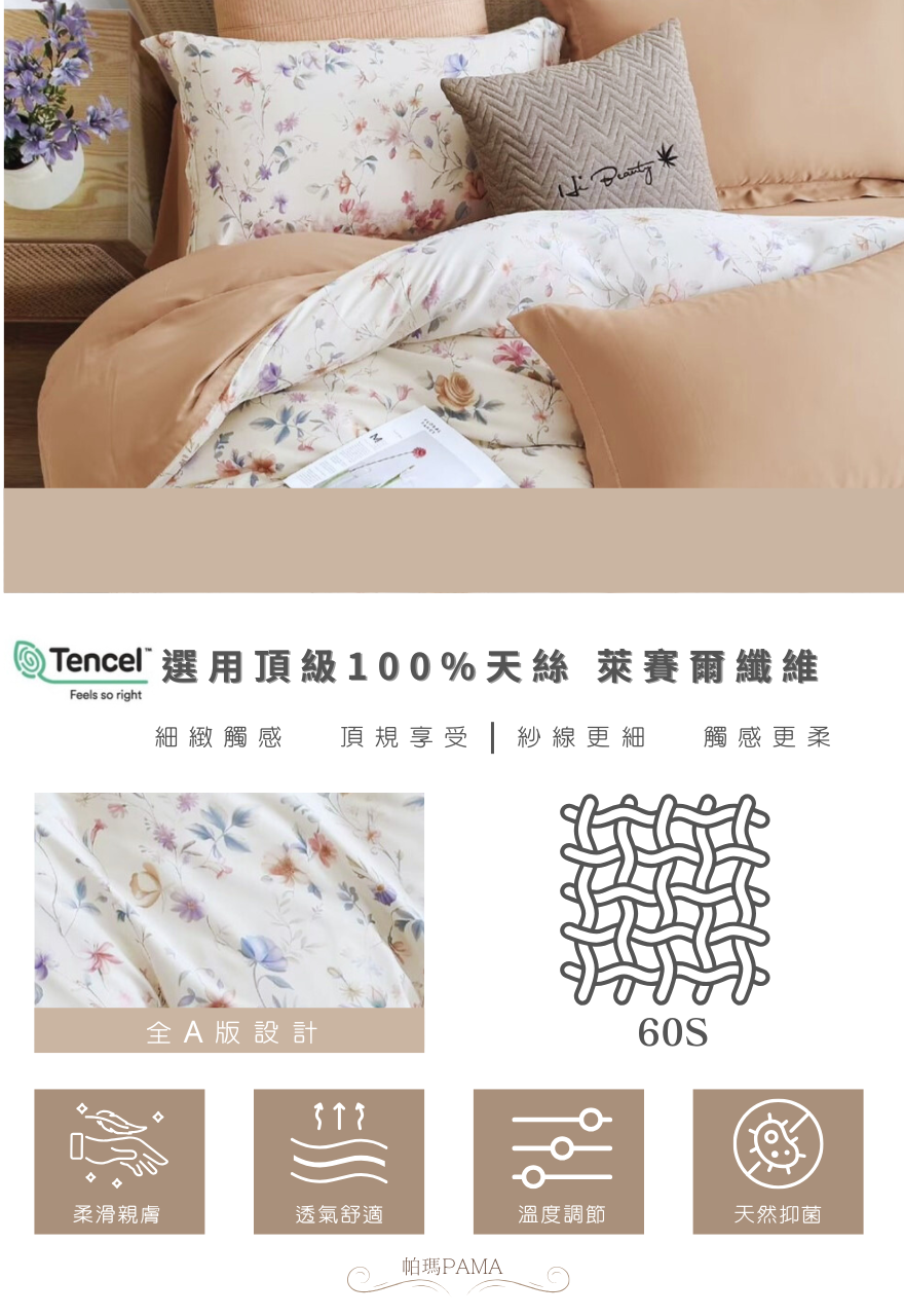 表布:100%萊賽爾纖維【60支紗-高密度萊賽爾纖維】