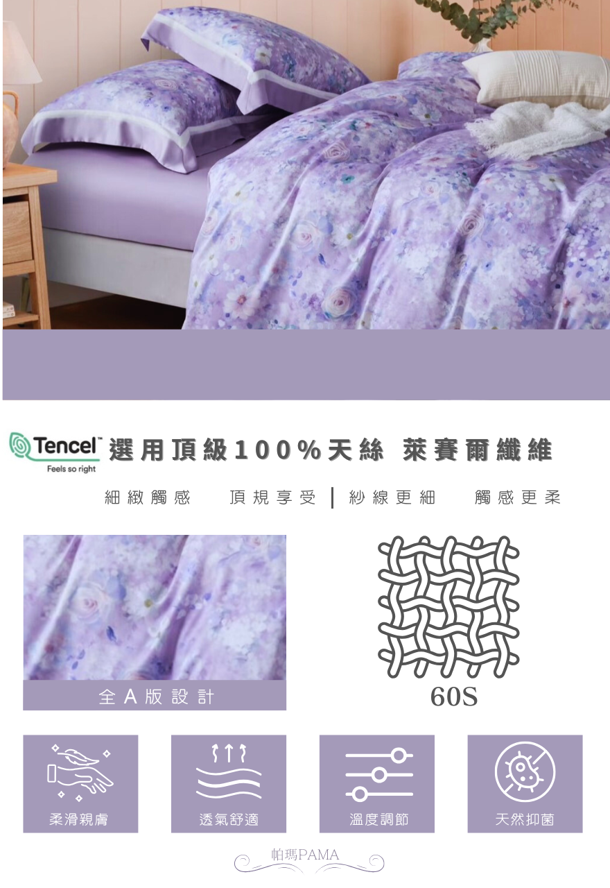 【帕瑪PAMA】60S 100%天絲兩用被床包組/雙人加大/浪漫綻放