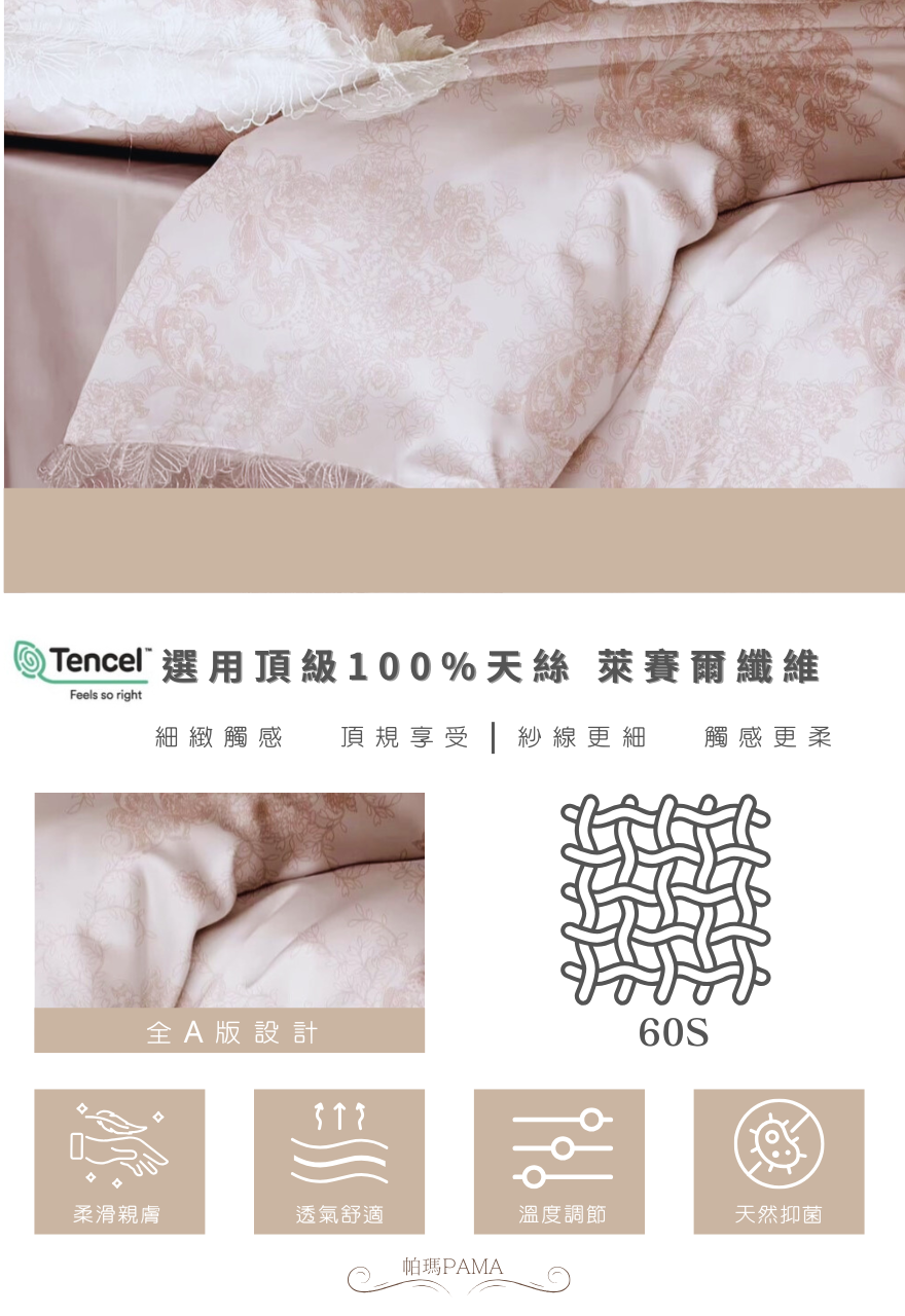 表布:100%萊賽爾纖維【60支紗-高密度萊賽爾纖維】