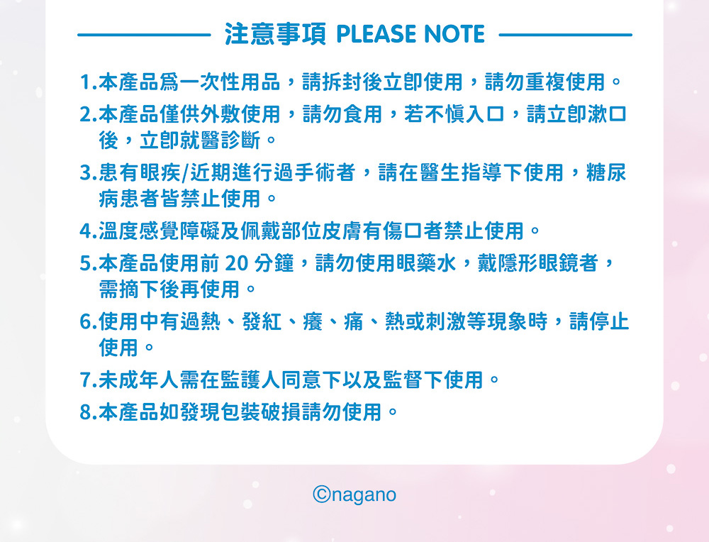 .因燈光色差及蒸氣眼罩機台不同,蒸氣眼罩可能有些微差異,以實際出貨為主