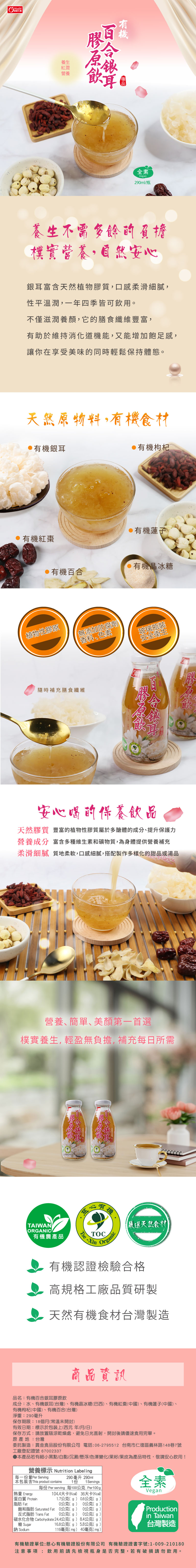 [箱購]康健生機有機百合銀耳膠原飲290mlx 12BOTTLE瓶