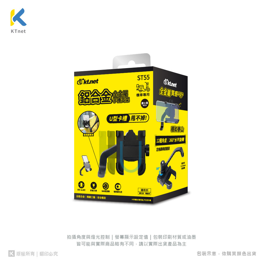 【KTNET】ST55全鋁金屬手機機車支架 黑