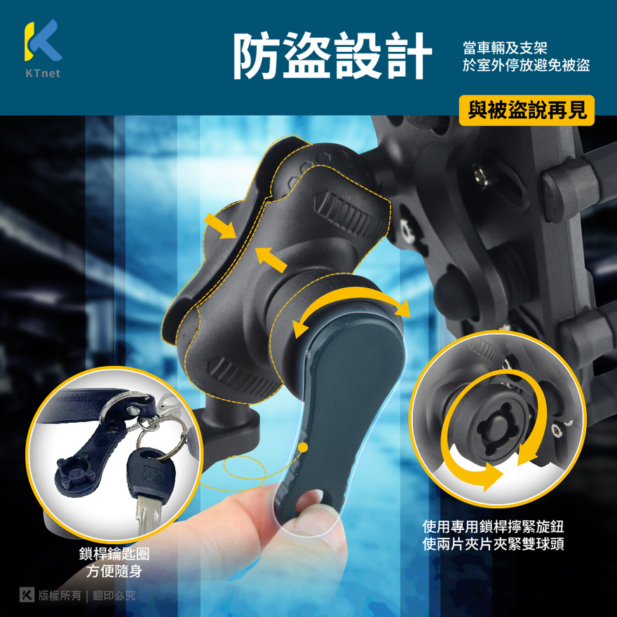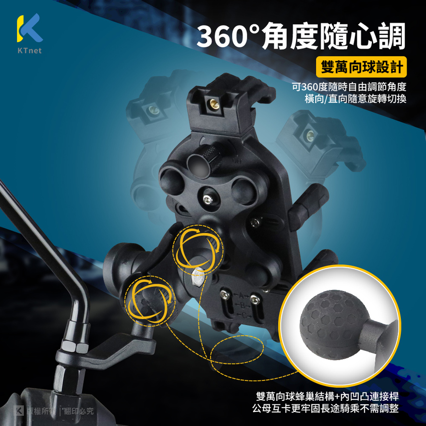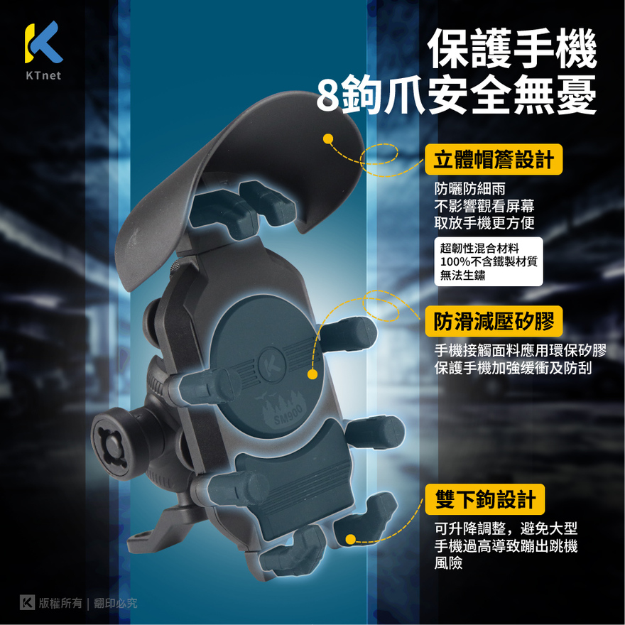 【KTNET】SM900 5合1 鎖扣防盜避震器手機支架 後照鏡款