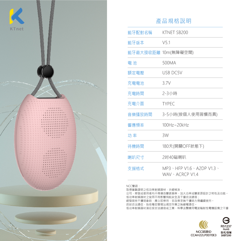 【KTNET】SB200 UFO無線藍芽TWS喇叭 粉紅