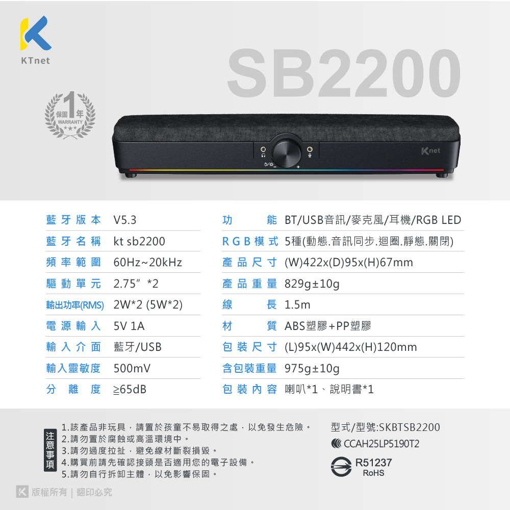 【KTNET】Relex SB2200 USB藍芽5.3聲霸喇叭
