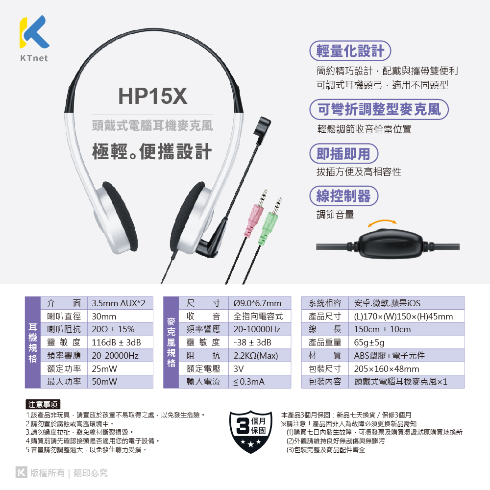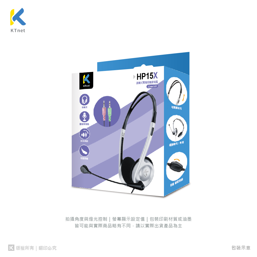 【KTNET】HP15X 頭戴式電腦耳機麥克風 銀色3.5X2