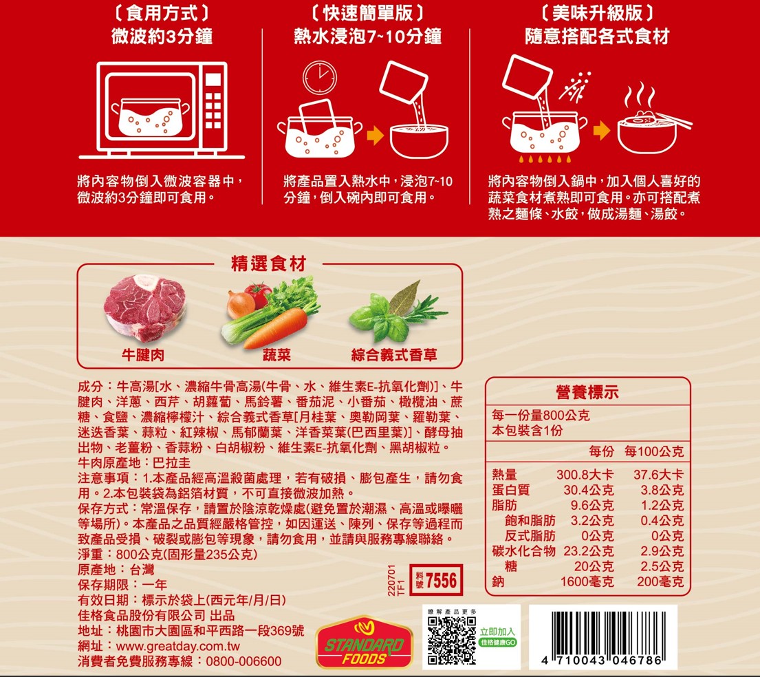 ◎品牌:得意的一天 ◎規格: 800g克 x 1 x 1PACK包