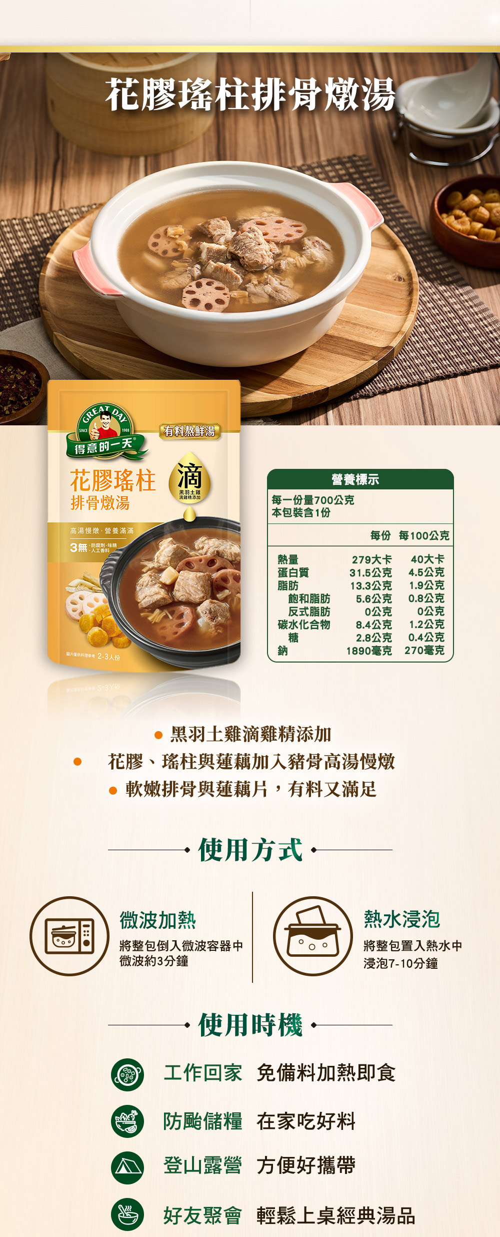 [正光藥局]得意的一天-花膠瑤柱排骨燉湯700G /袋 (2~3人份)_2入組
