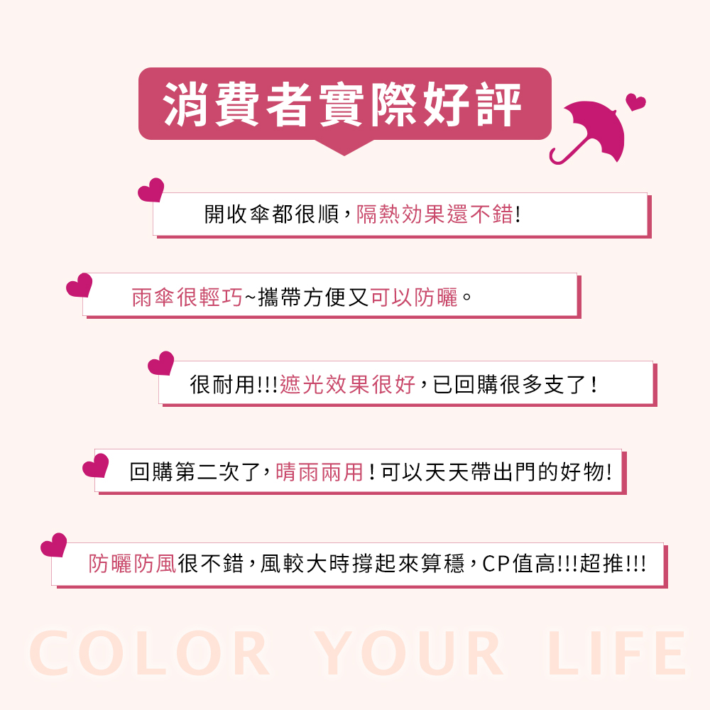 ★德國百年傘具大牌,超過100項專利技術★★遮光隔熱黑膠防曬塗層,能有效降溫★★SGS檢驗測試UPF50+,抗UV99.9%★★全新傘骨升級,抗風力更佳★★輕量設計,輕巧無負擔★