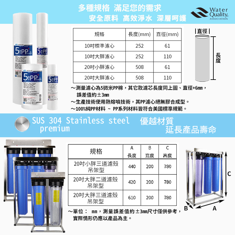 配件:不鏽鋼單道吊片x1、濾殼把手x1、壁虎x2、不鏽鋼螺絲x4
