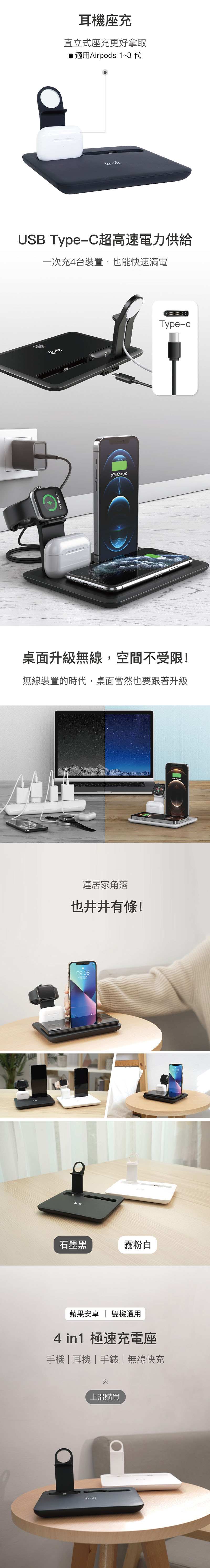 .內建:15W手機快充座 / 耳機座充 / Apple Watch智慧手錶立架 / Qi無線充電板