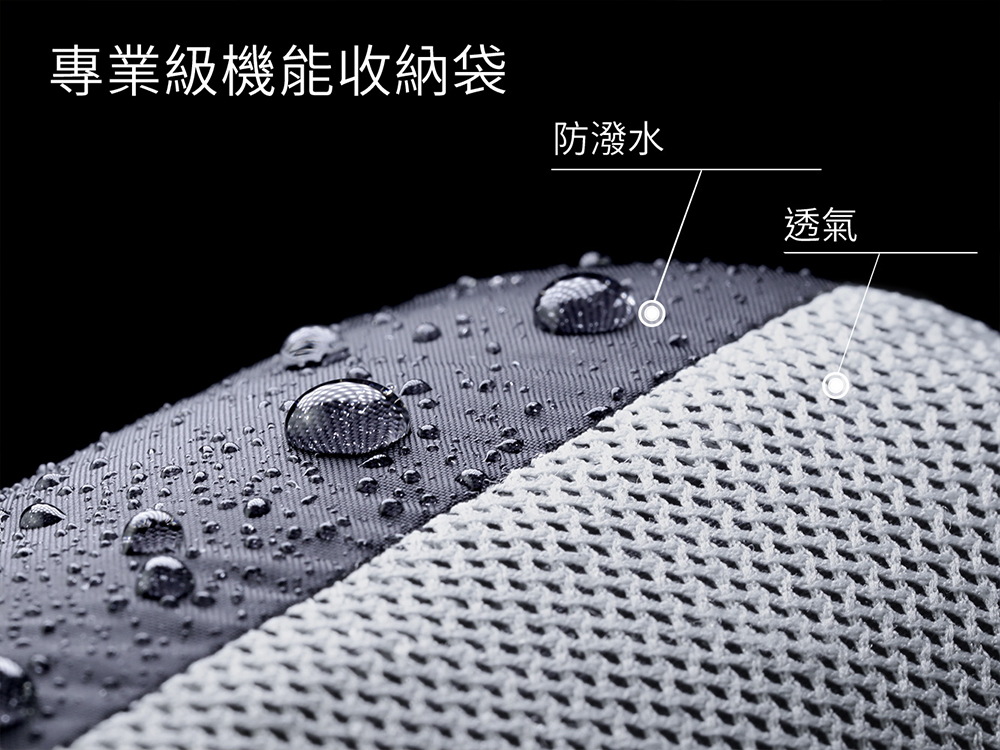 外袋:外袋採用尼龍布與網布搭配,具彈性與透氣性,方便收納與攜帶,並設有提帶,便於拿取