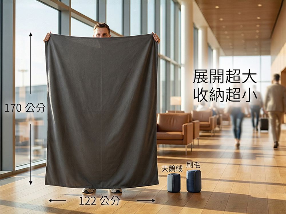 商品資訊型號品名:E650 天鵝絨毛毯材質:100% 聚酯纖維總重量:約250g尺寸:122x170cm (48"x67")收納體積:10x15cm台灣製造 設計【特選布料】使用台灣高品質天鵝絨,具有良好的親膚性。經過布面刷毛處理,能有效提升保暖效果。【外袋】外袋採用尼龍布與網布搭配,具彈性與透氣性,方便收納與攜帶,並設有提帶,便於拿取【舒適】保暖舒適的質感,亦可與睡袋搭配使用,提升溫暖與衛生。【多用途】無論在飛機、火車、客運或汽車中,都能提供舒適與衛生,居家時也能輕鬆保暖,隨時使用。 建議使用場合春秋季、涼爽氣候登山、露營、健行、背包旅行、居家、搭乘飛機、火車或客運都適用清洗注意事項建議使用專用洗劑或中性洗劑切勿乾洗、勿用柔軟精與漂白劑,以免損壞織物並影響商品特性。若為局部髒污,可先針對髒污處用軟毛刷做局部擦洗即可。切勿使用攪拌棒的洗衣機,這會造成不當的壓力,容易損壞。請以低溫烘乾或平放陰乾做乾燥處理。避免陽光直接照射。