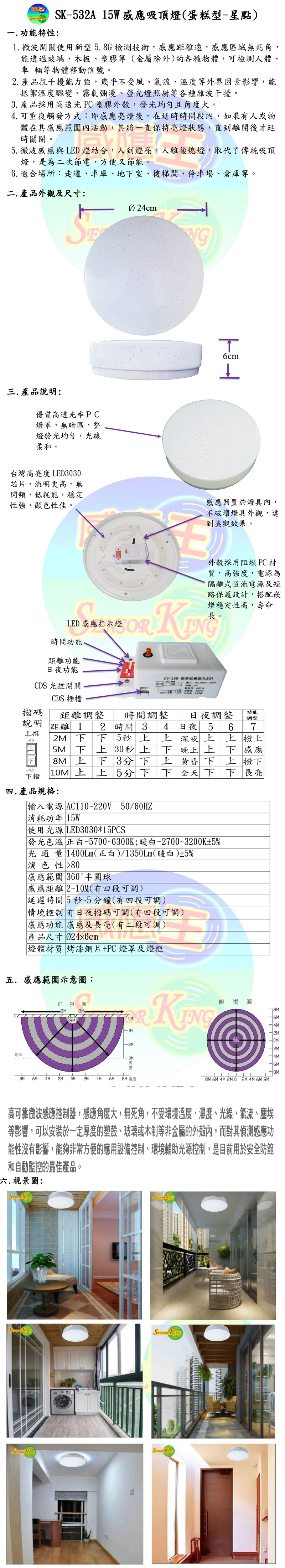 【感應王】SK-532A 15W微波感應蛋糕燈(全電壓) 可調日夜,距離及時間
