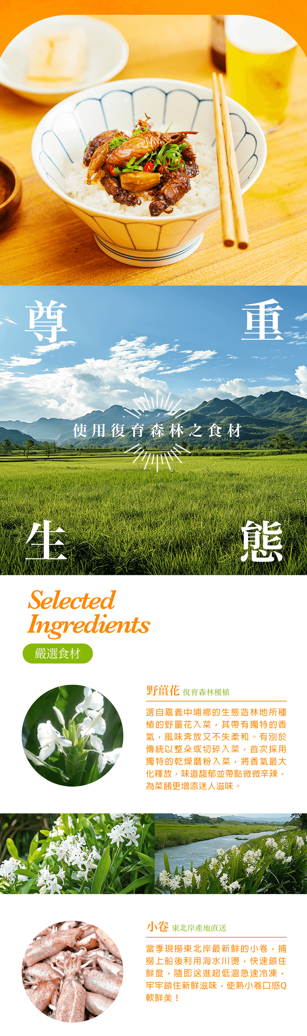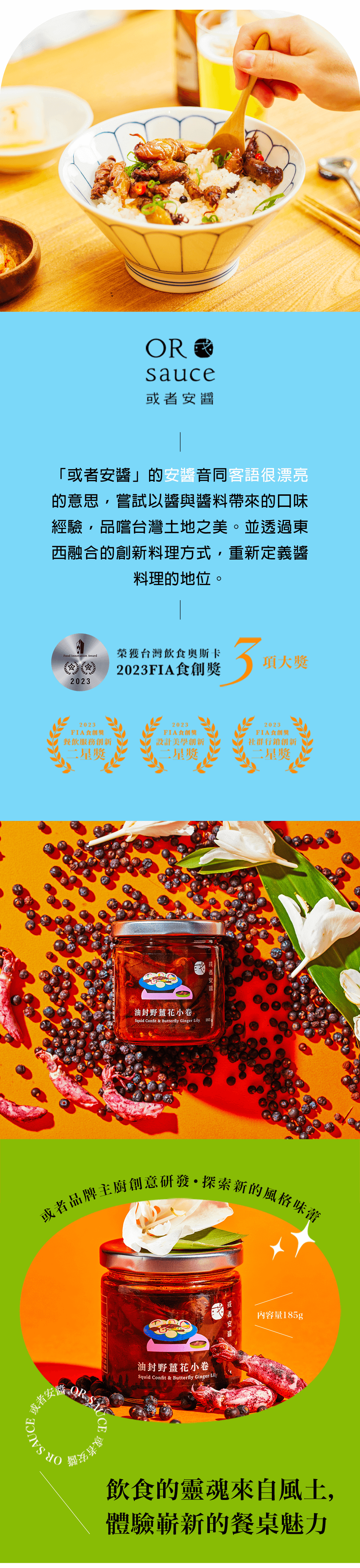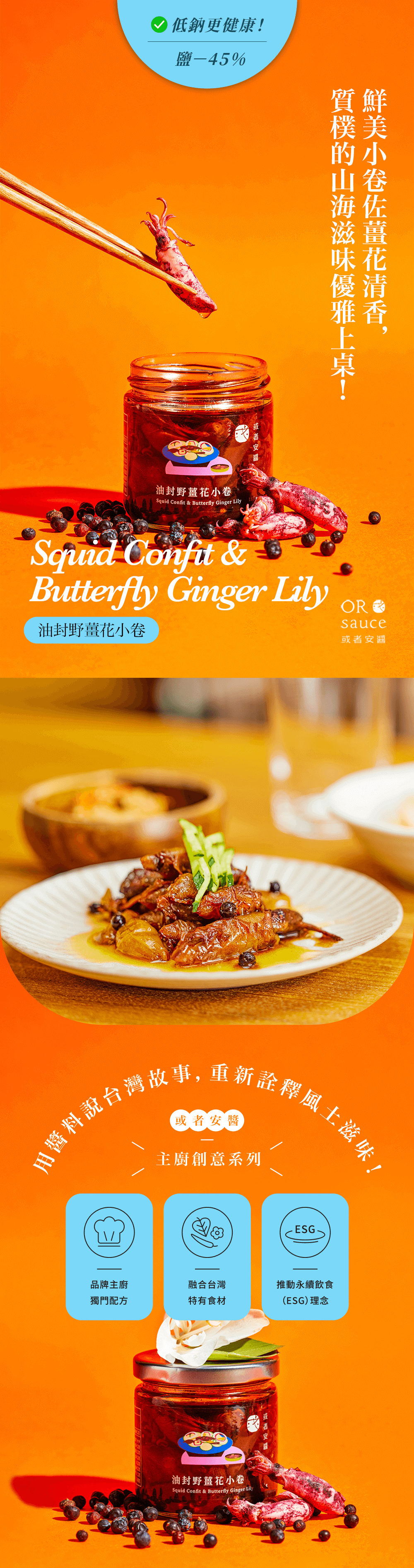 🎉風味新升級!減鹽 45% 更健康🎉榮獲2024 ITQI 絕佳風味獎一星🎁質感送禮推薦 ▸▸《主廚創意系列》3入禮盒選用嘉義中埔鄉「復育森林」所種植的野薑花,搭配正值洄遊至東北岸的新鮮小卷,是一款別出心裁、獨具特色的即食醬品! 延續或者品牌精神「讓在地人驕傲、旅行者憧憬」所展開的五感閱讀,透過食材選擇、設計,帶來前所未有的食味體驗,並且響應永續飲食理念!●規格:185g 固形物:100g●特色食材:東北岸小卷、野薑花、杜松子●保存期限:2年●保存方式:未開封請常溫保存,避免高溫潮濕及日曬場所;開封後冷藏,並儘速食用完畢。●原產地:台灣