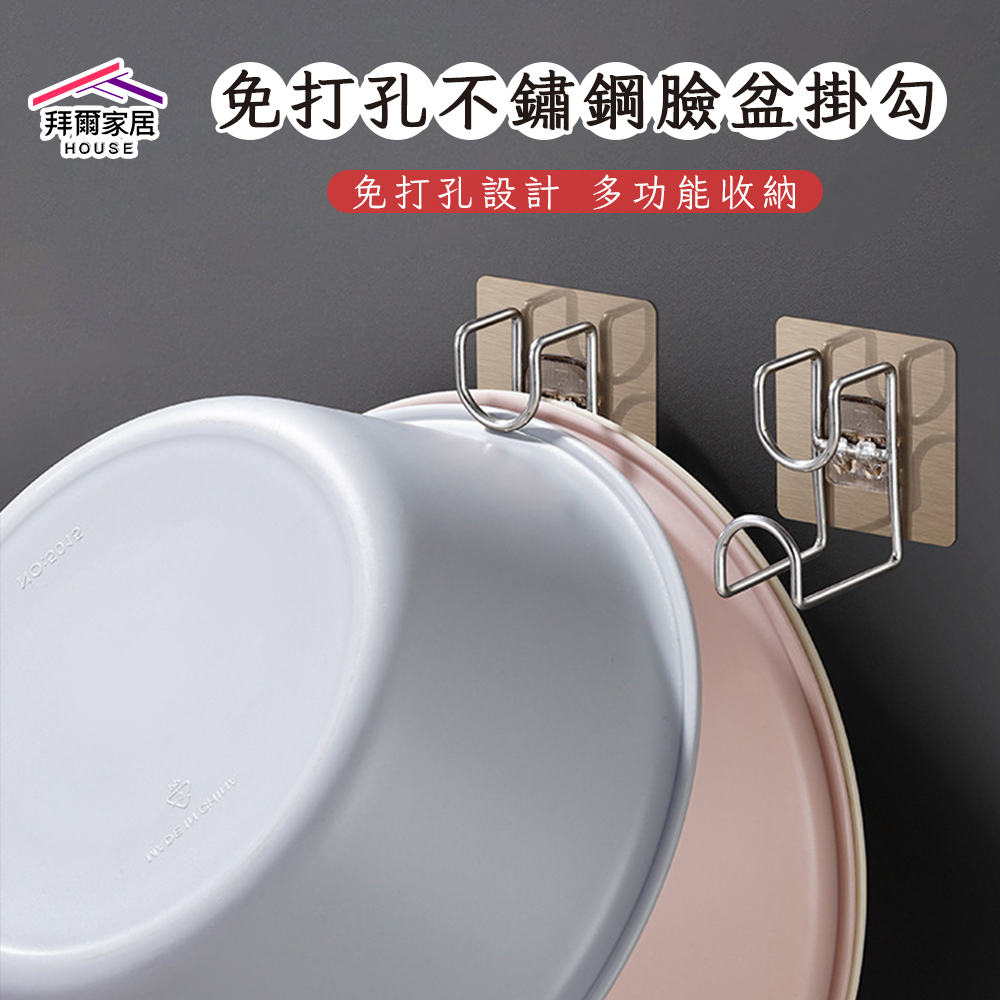 [拜爾家居] 免打孔不鏽鋼臉盆掛勾 台灣現貨 不鏽鋼無痕掛勾 不鏽鋼掛勾 臉盆掛勾 免打孔掛勾 浴室掛勾 廚房掛勾 掛勾 (免運)