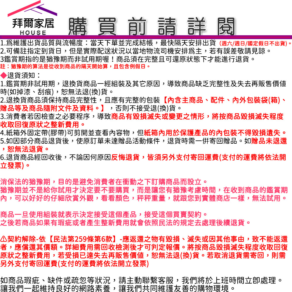 【退/換貨&售後服務】
