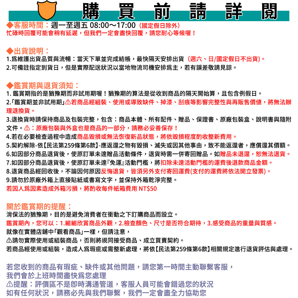 【退/換貨&售後服務】