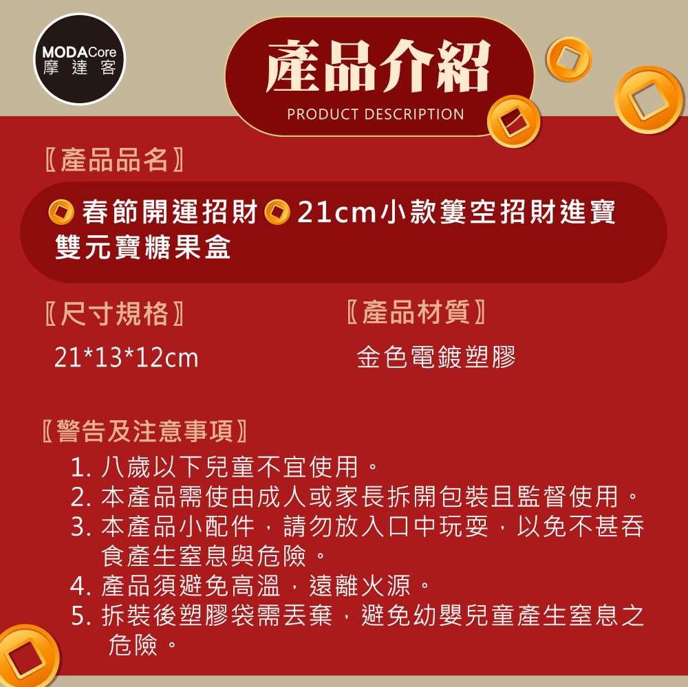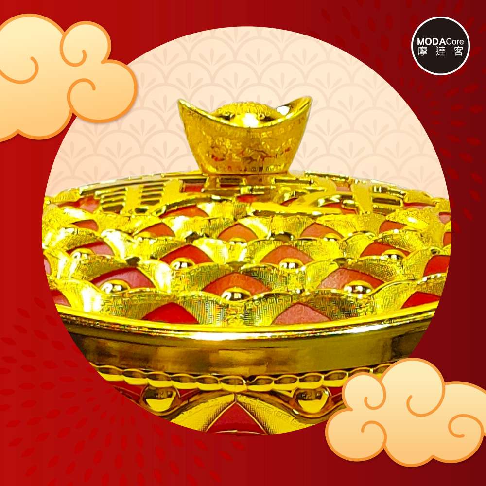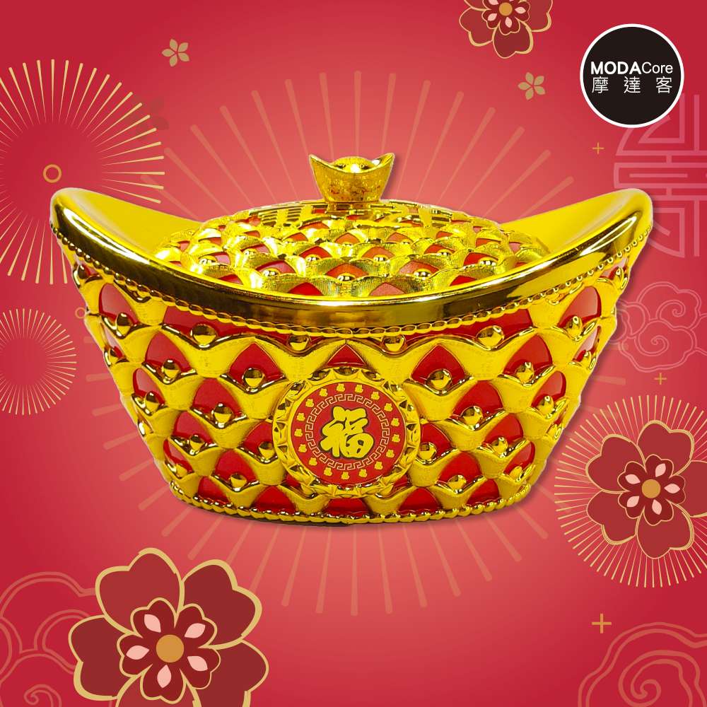 摩達客◉春節開運◉新年21cm小款簍空招財進寶雙元寶糖果盒