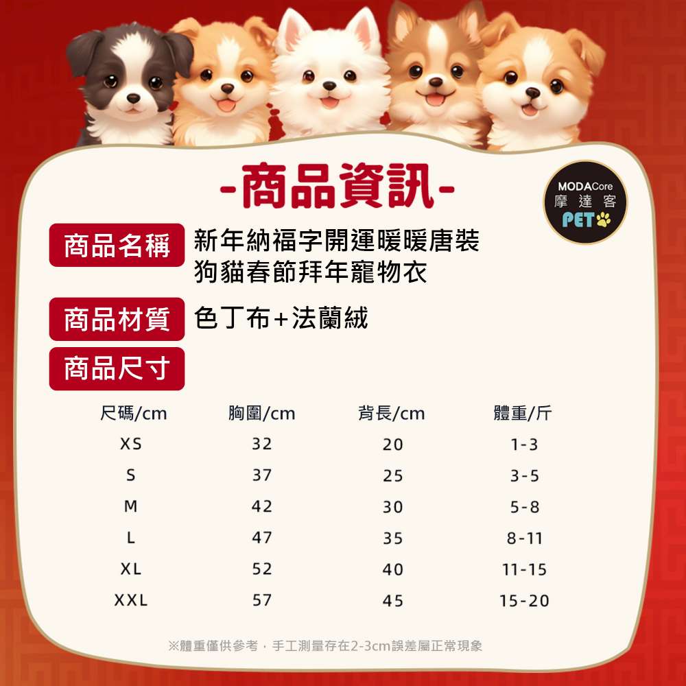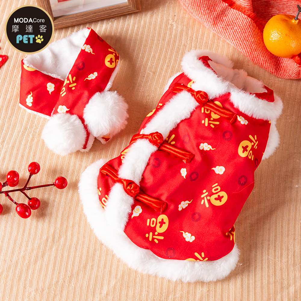 摩達客 寵物服飾 602新年納福字開運暖暖唐裝|狗貓春節拜年寵物衣 尺寸可選