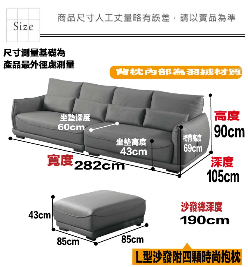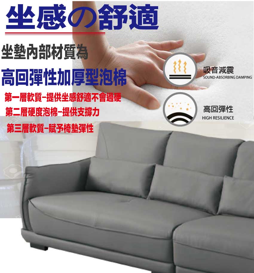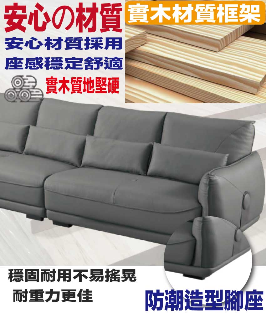 採用內部實木板材框架+防潮造型腳座+透氣柔韌皮革+高回彈力加厚泡棉等安心材質製造