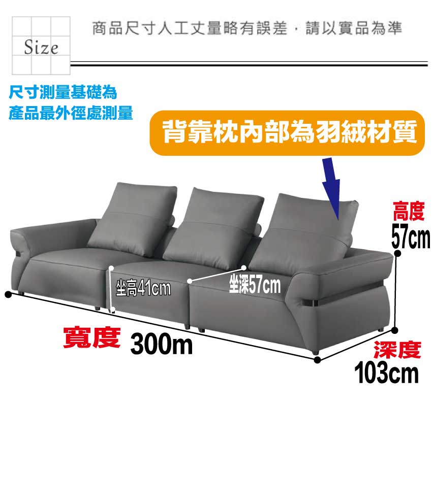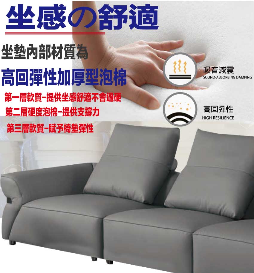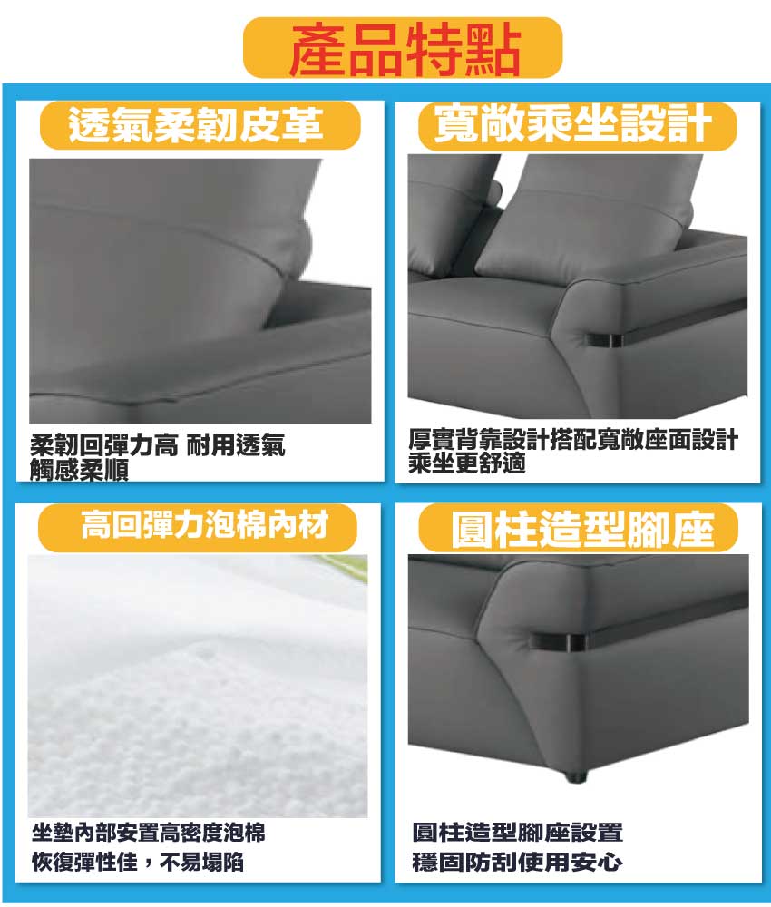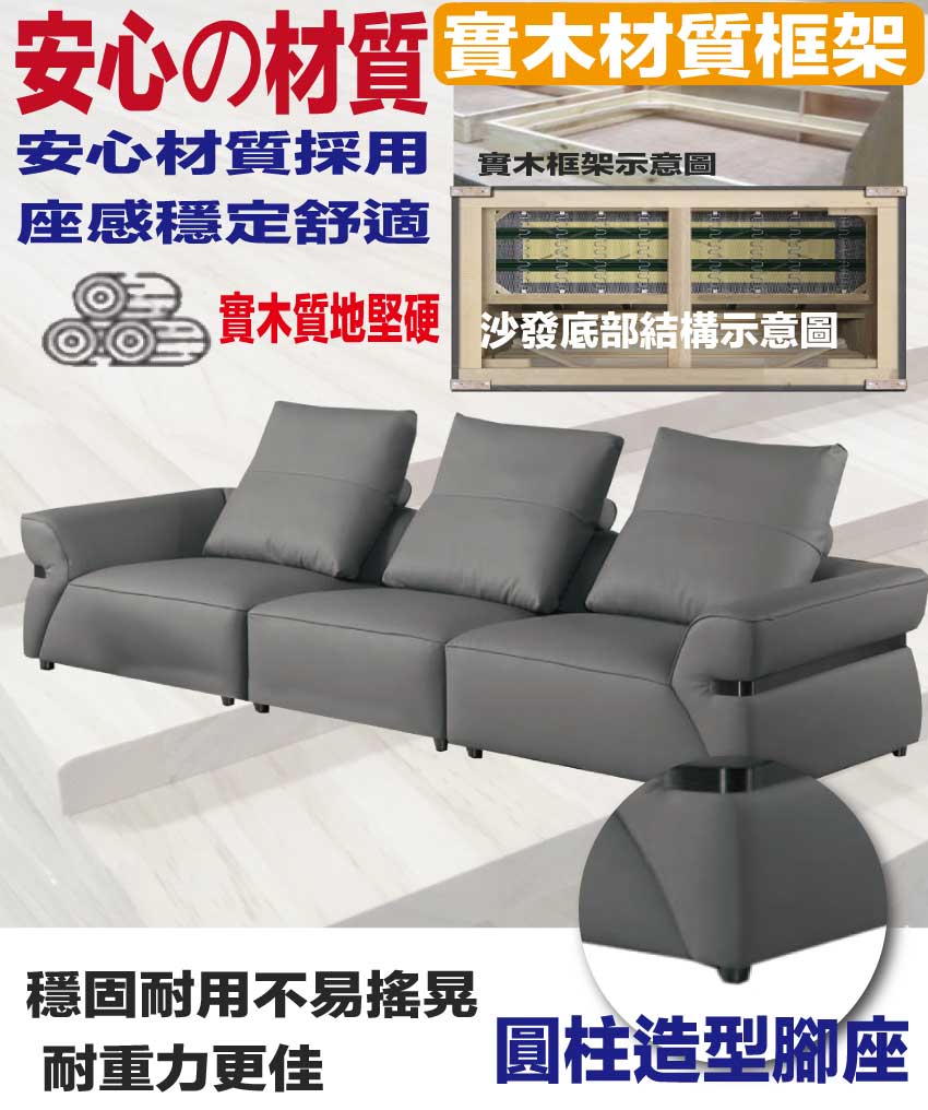 採用內部實木板材框架+防潮造型腳座+透氣柔韌皮革+高回彈力加厚泡棉等安心材質製造