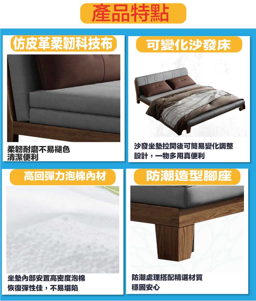 【文創集】柏莉雙色科技布前拉式沙發椅/沙發床(客約商品)