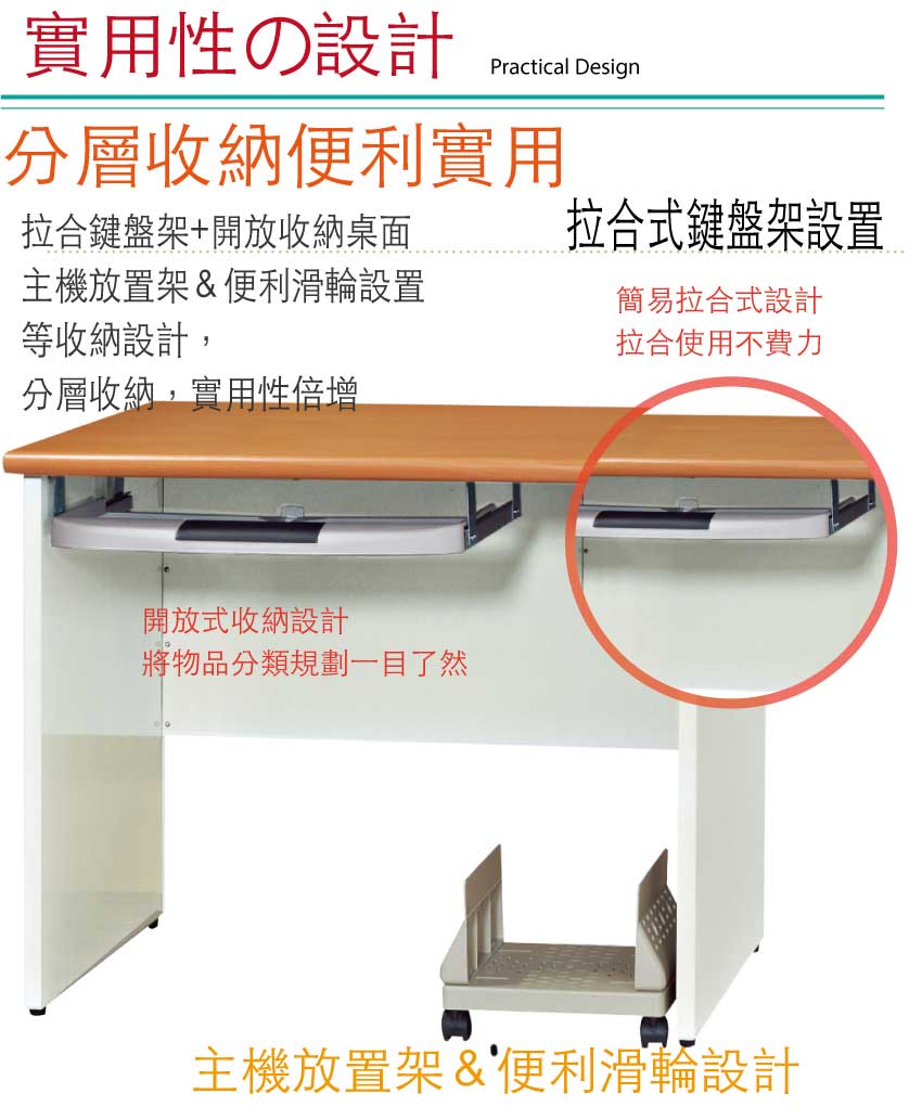 拉合式鍵盤架+開放收納層格+主機放置架等便利收納空間設計